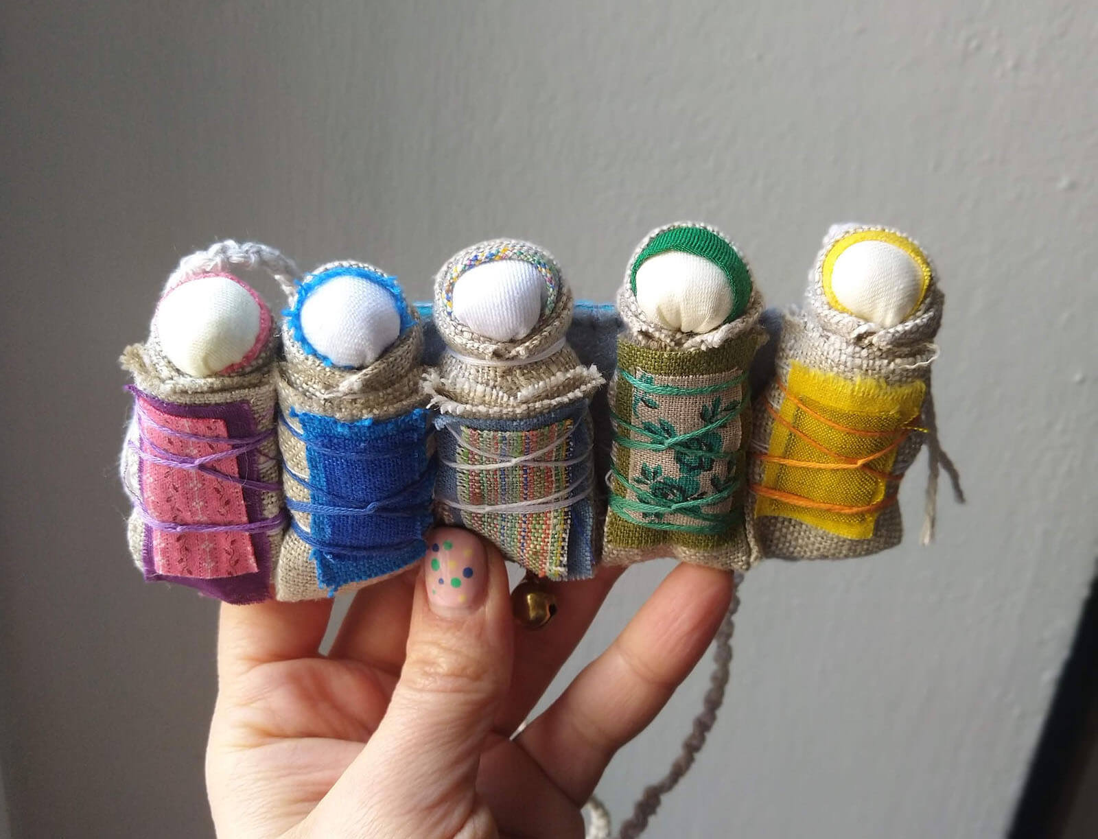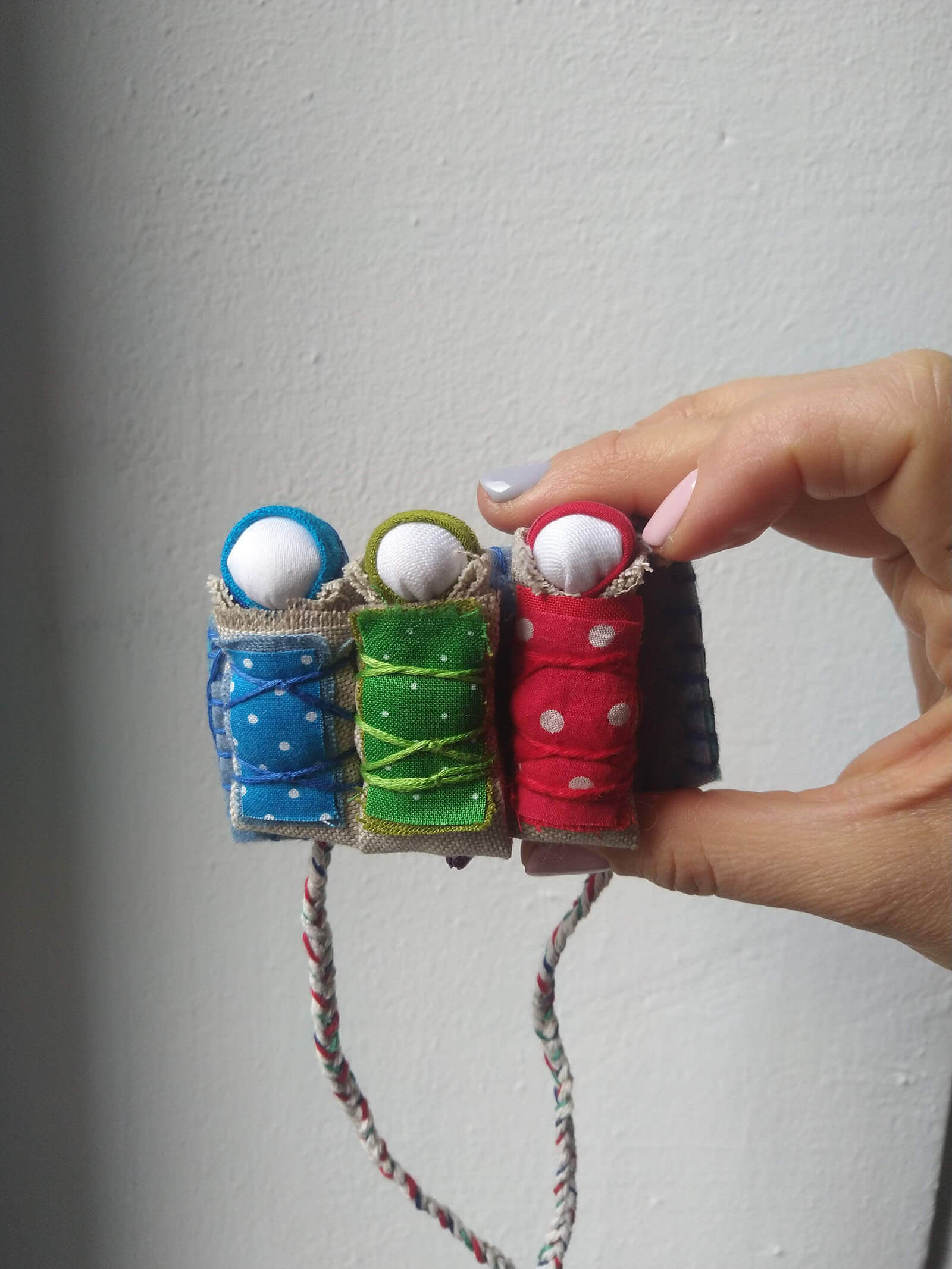 Otulaczki to malutkie laleczki kształtem przypominające zawinięte w beciku niemowlaki. Można je z łatwością zawieszać na wózku wychodząc z dzieckiem na spacer, jak również umieszczać na kołysce, foteliku samochodowym czy łóżeczku.